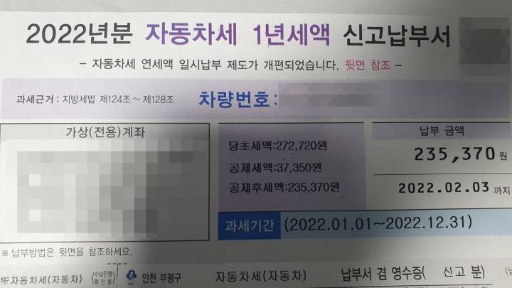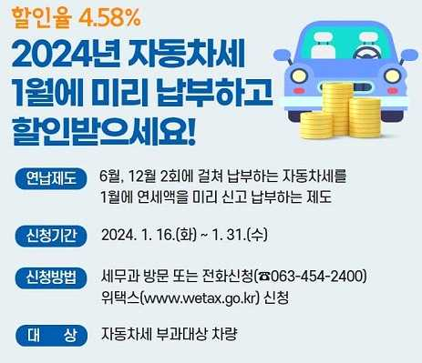 * 12월에 자동차세 고지서를 받기 이전까지는 미리 내는 금융 이익을 챙겨주는 거라 보면 됨