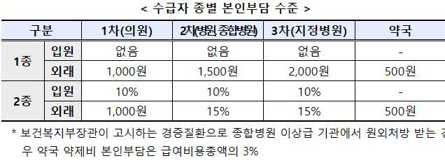 ※ 의료수급자 종별 본인 부담 수준