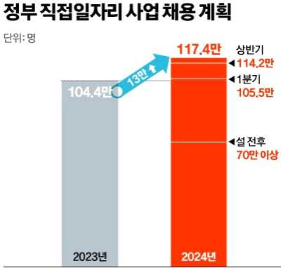- 올해 118만 명가량 계획된 직접 일자리의 90%(105만 5,000명)를 1분기에 제공하는 등 상반기에 97%(114만 2,000명)를 채용