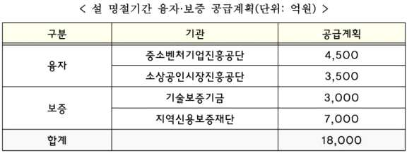 ※ 중소기업벤처부, 설 명절 기간 융자 · 보증공급 계획