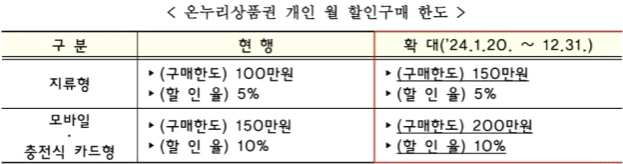 ※ 중소기업벤처부, 온누리상품권 개인 월 할인구매 한도