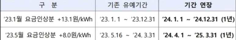 - 2024년 5월 이후에도 인상분 적용이 유예